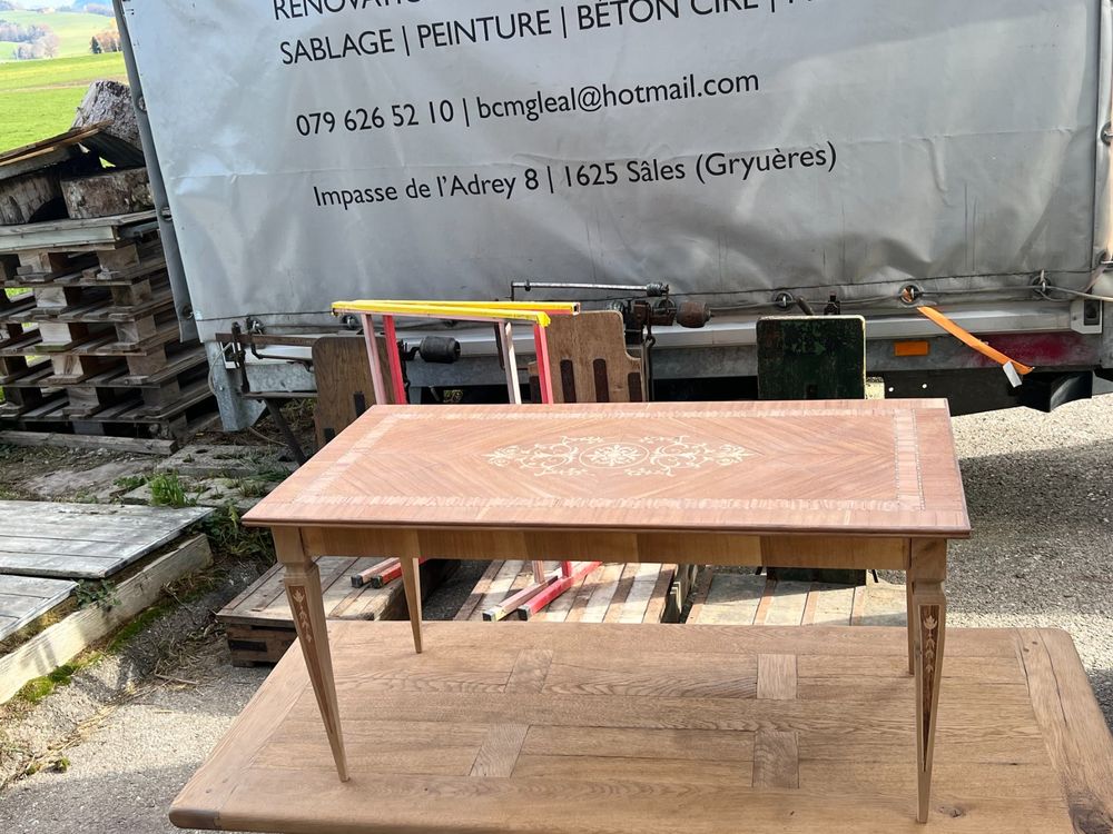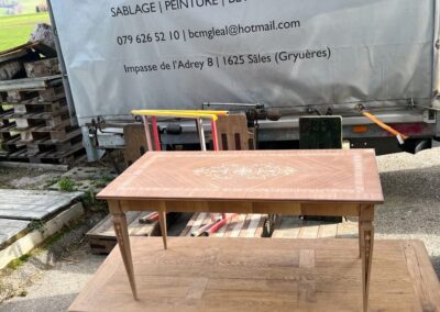 – Table basse marquetée sablée
